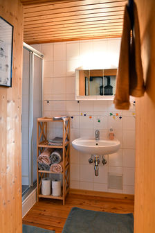 ...d'une chambre - salon à 2 lits, une chambre à 3 lits, une cuisine avec coin-repas et une petite salle de bain avec douche et WC. Tous les fourres de duvets